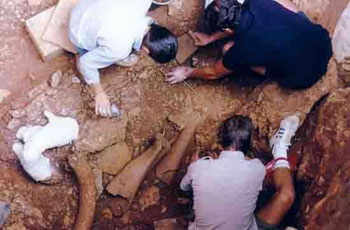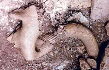 D'autre part, sur une couche (M1), de nombreux restes de mammouths mis au jour : une défense entière, un crâne, une mandibule ; le mammouth est accompagné d'une faune froide :