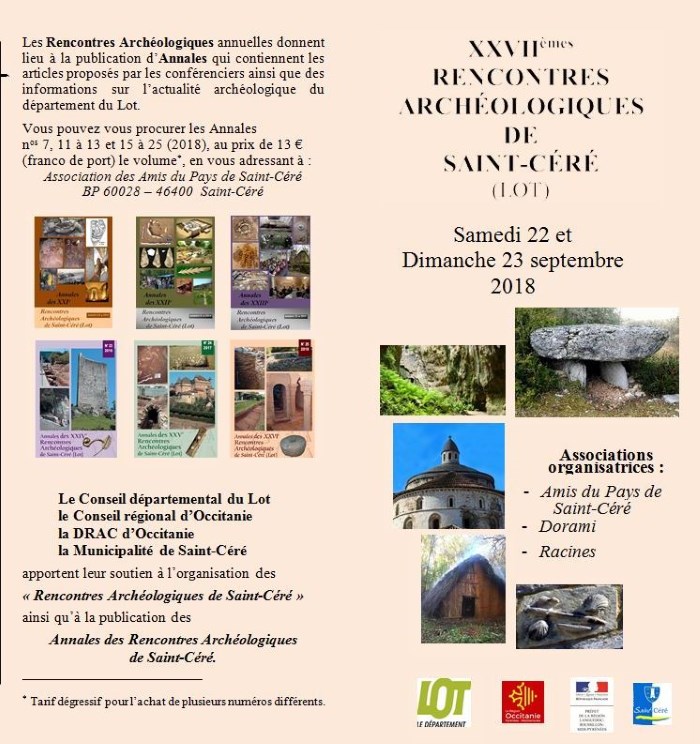 Samedi 22 et dimanche 23 septembre 2018 Les XXVIIèmes Rencontres Archéologiques de Saint-Céré